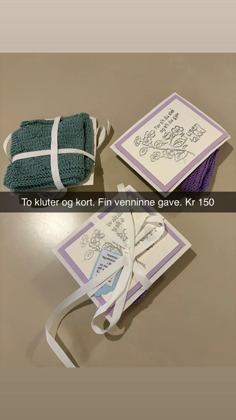 I forbindelse med julemessa hver høst selger vi håndlagede produkter, men det er også mulig å kjøpe gaver hele året. Vi har babytepper, genser til både store og små, dukkeklær, votter, luer og mye mer. Ta kontakt med Randi-Karin om du er interessert i det.